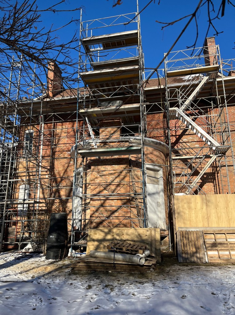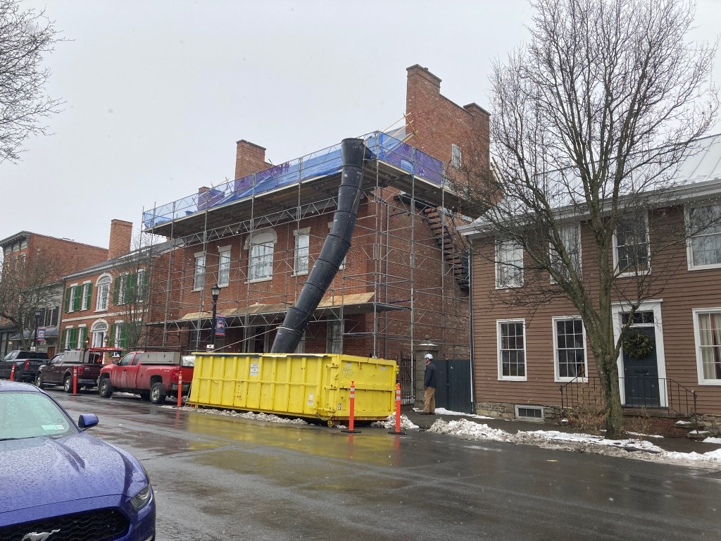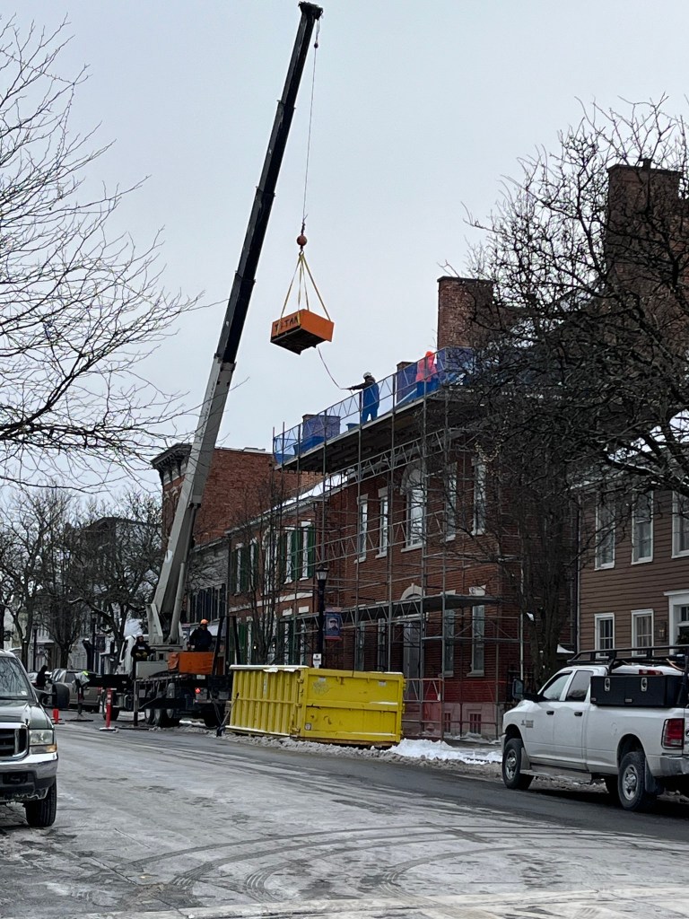 October 16, 2024, Hudson, NY: Since the beginning of 2024, extensive work has been under way to repair and conserve the Historic Robert Jenkins House in Hudson. Roof, parapets, and gutters have all been replaced or repaired. On Saturday, October 26, at 1:30pm, project architect Marilyn Kaplan of Preservation Architecture in Albany will describe the extent of the project, along with plans for additional work over the next year. The event is free and open to the public. Unfortunately, the building is not yet handicap-accessible, although a plan for accessibility is one of the proposed next steps.