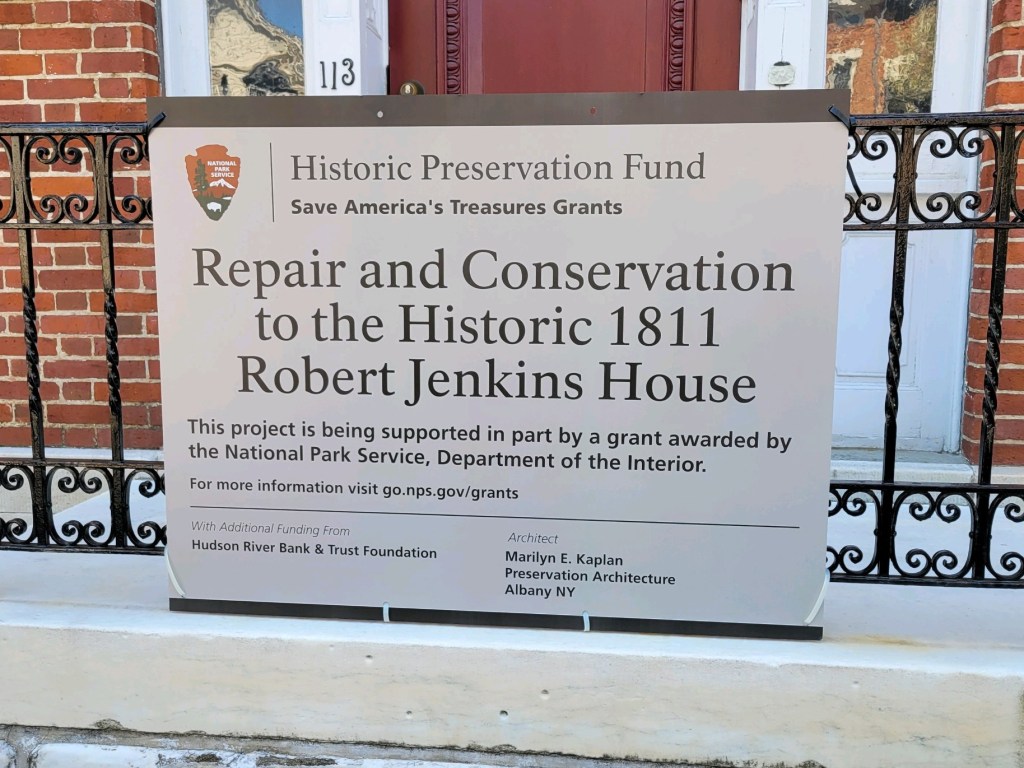 The Robert Jenkins House is located at 113 Warren Street on a particularly beautiful and internationally trendy block of the city near Hudson’s waterfront. The historic house is owned by the Hendrick Hudson Chapter, National Society Daughters of the American Revolution, which maintains it as a DAR chapter house. The restoration project has, to date, completed replacement of the house’s slate roof and extensive masonry repairs. Yet to be completed are updates to its aging infrastructure, restoration of certain windows and exterior doors, and creation of an accessible entry at the rear of the house. Funding assistance is from a Save America’s Treasures grant awarded by the National Park Service, Department of the Interior, and also from the HRBT Foundation, the William G. Pomeroy Foundation, and the generosity of chapter members and friends and neighbors.