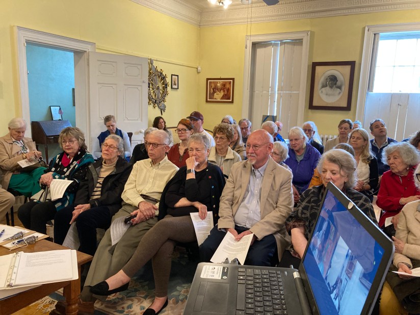 Fifty members of the public and the Hendrick Hudson Chapter attended the inaugural Women and Whaling in Hudson event on Saturday April 26th. They enjoyed docent-led tours and a panel discussion exploring life in Hudson for women during the height of its whaling days, which were 1783-1829. Topics included everyday clothing, education, and generally what we know, and don’t know, about women during that time. Here are a few photos, plus the program from the panel.