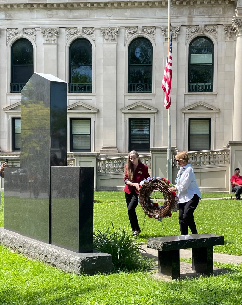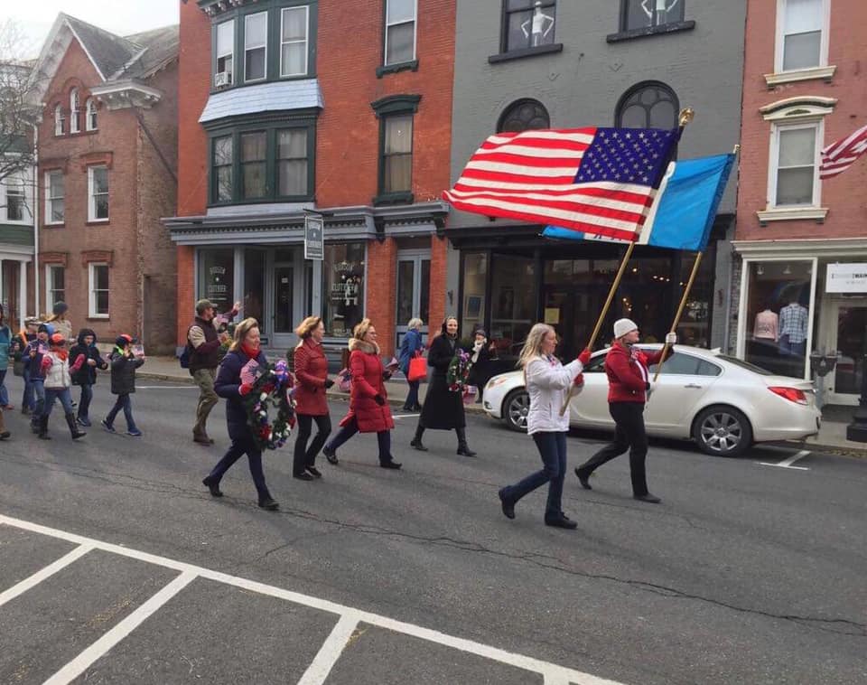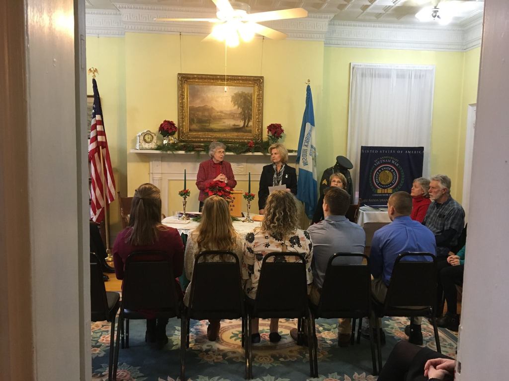 below: Over the Years: Good Citizens Awards, Community Service Awards, parades, Memorial Day, Flag Day, Veterans Day, Winter Walk, NYS Regent visits, New Member Swearings-In, Pollinators, our Benefactor, brand-new Citizens, our beautiful Theatre Curtain, Historic Bennington VT, marking a beloved member’s grave, the Hendrick Hudson Free Library, New Lebanon’s Cypress Hill Cemetery, sculptor Sarah Freeborne’s memorial to her parents, veterans’ donations, Tuxedo Cat, program speakers, Save America’s Treasures, Real Daughters, house tours …