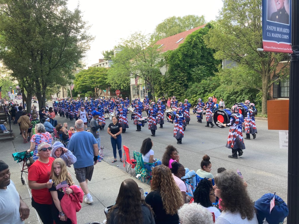 below: June 2023: Flag Day Parade, with the Historic Robert Jenkins House the perfect backdrop. The Seth Jenkins House is to the left. Robert and Seth were brothers.